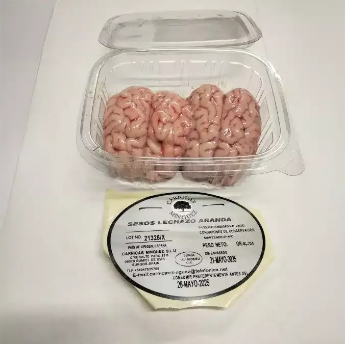 Sesos de lechazo en bandeja de 2 o 4 unidades.